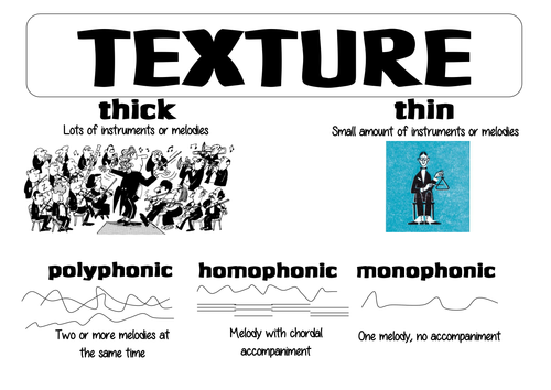 When you describe the texture of a piece of music, you are describing how much is going on in the music at here are definitions and examples of the four main types of texture.