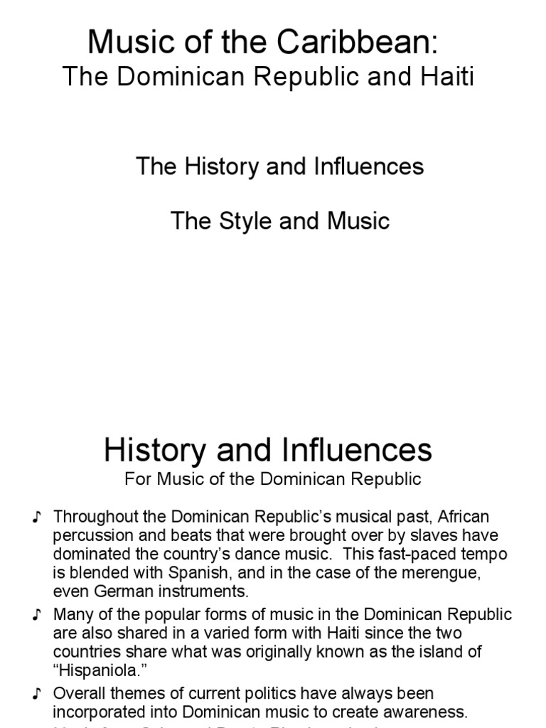 As such, it served as the logistical base for the conquest of most of the western hemisphere. The music here is a wonderful representation, and on top of that, a portion of the proceeds from this cd will go to the bayahonda cultural foundation which aids in the development and promotion of the traditional cultural expressions of the dominican republic. I know one of the first things i like to now about an area is what type of music they listen to. Dominican music has always been closely intertwined with that of its neighbor, haiti (see music of haiti). African heritage is reflected in music. The music of the dominican republic is primarily influenced by west african, european, and native taino influences. Once the spainards and french brought over slaves to the island, the music turned. A survey part ii. the music quarterly, vol. The dominican republic is inhabited mostly by people of mixed european and african origins. Musica nella repubblica dominicana (it) music and musical traditions of the dominican republic (en); The san francisco monastery in santo domingo, sourcethe history of the dominican republic can be traced back to 600 ad, when the lone occupants of the island were the taino people, an indigenous tribe of early amerindians. It was founded by josé de jesús ravelo (don chuchú), one of the main dominican composers. The political life of the republic during these decades is dominated by a lawyer and historian, joaquin balaguer, who has.